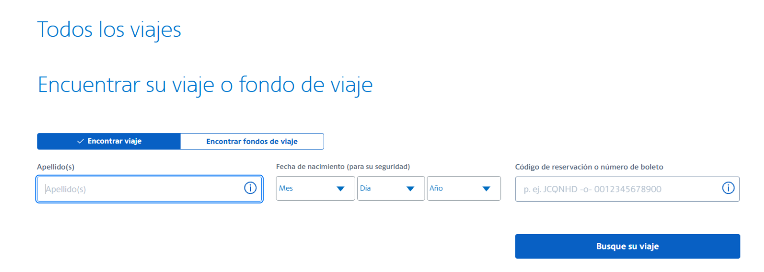 4-Colocar el apellido del pasajero, fecha de nacimiento y código de reserva o número de ticket electrónico. Ese código de la reserva lo encontrarás en el bono de TTY.