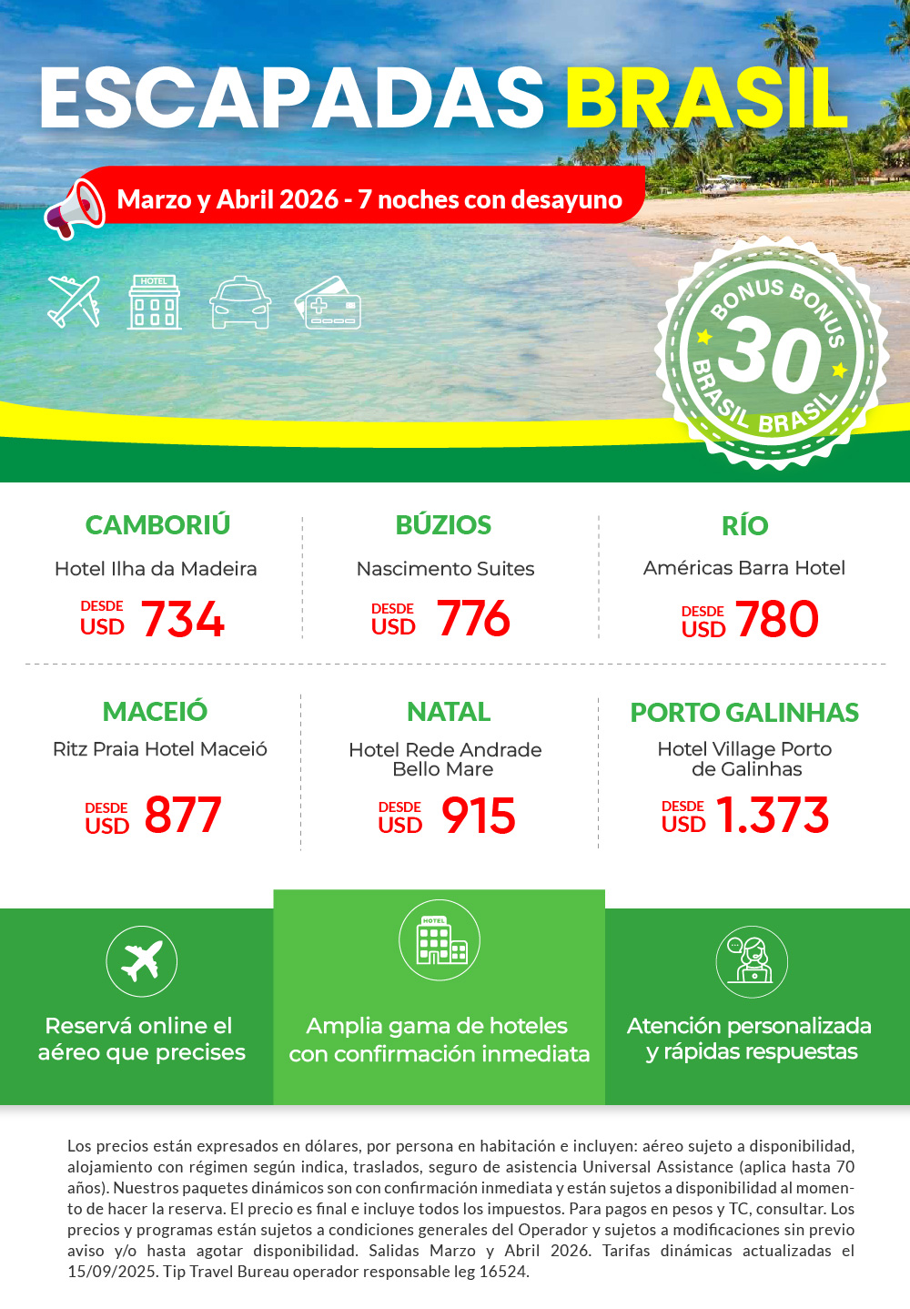 Cupos a BRASIL en FIN DE AÑO