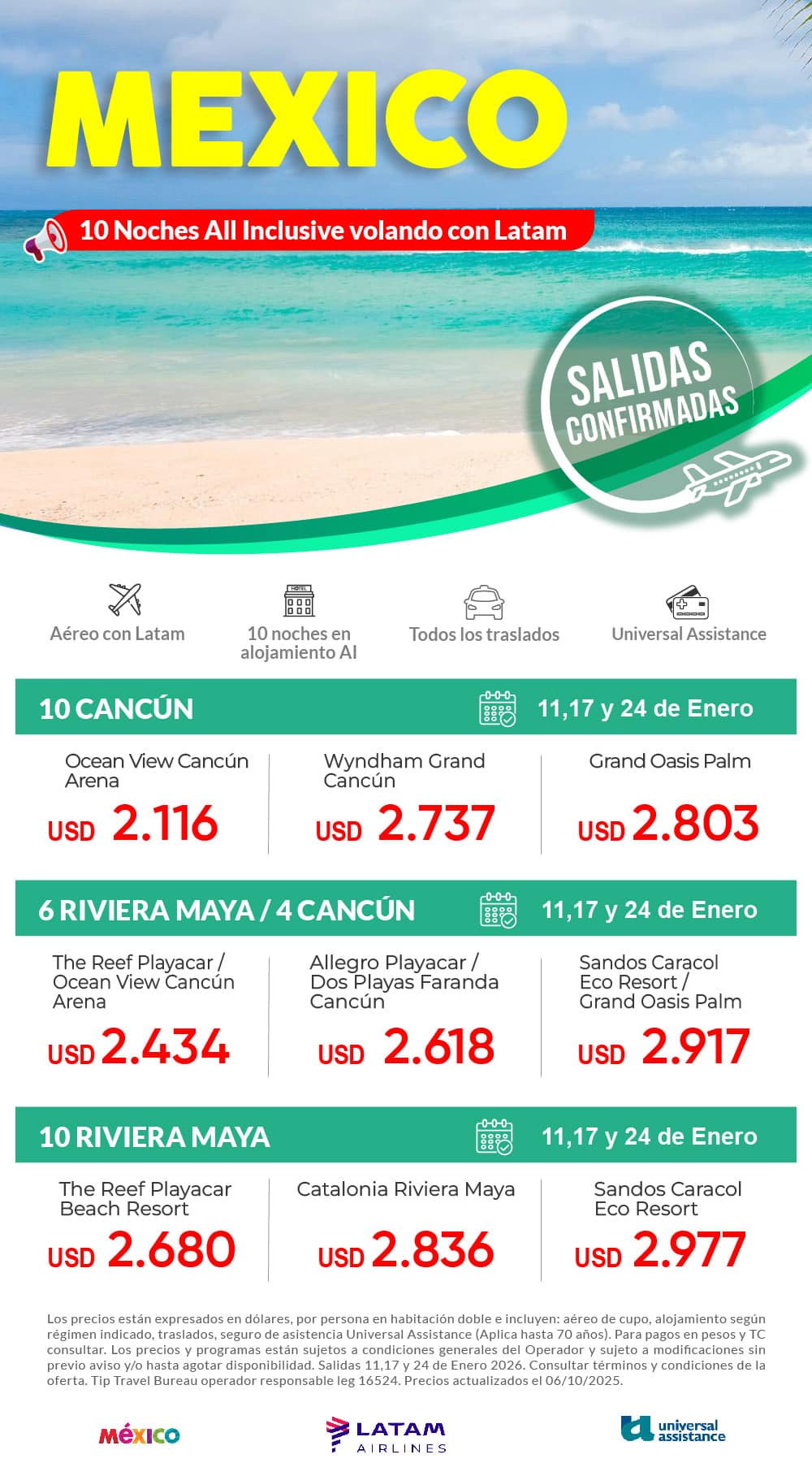 Cupos confirmados a MEXICO 10 nts en baja 2025
