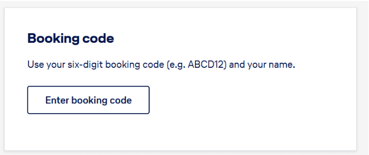 4- Elegir la opción de acceso con BOOKING CODE (Código de la reserva).
