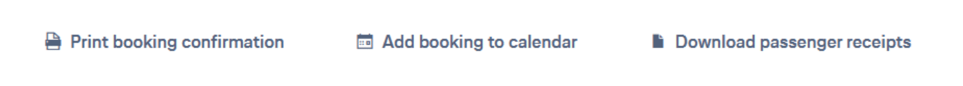 6- Una vez dentro de la reserva, verán gestión de reserva (MANAGE BOOKING) y la opción para imprimir la confirmación de la reserva (PRINT BOOKING CONFIRMATION) o descargar los tickets de los pasajeros (DOWNLOAD PASSENGER RECEIPTS).